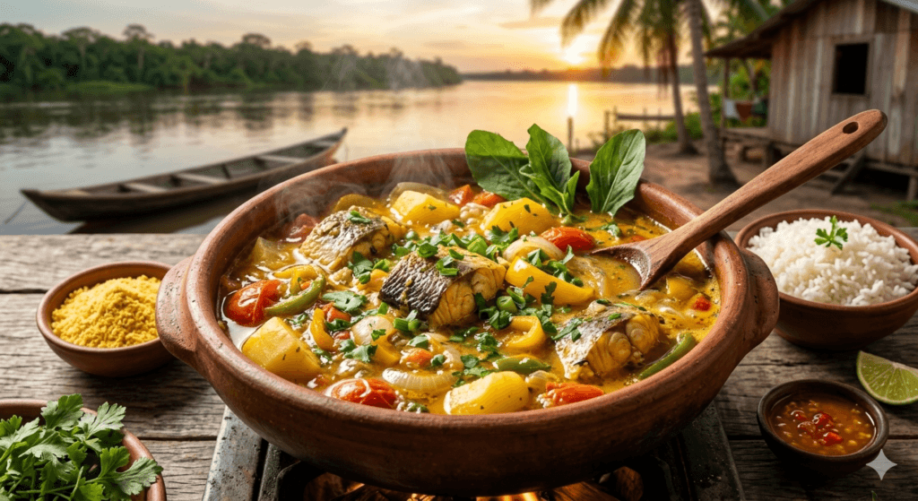 A caldeirada de tambaqui é um prato completo, mas os acompanhamentos tradicionais não podem faltar: